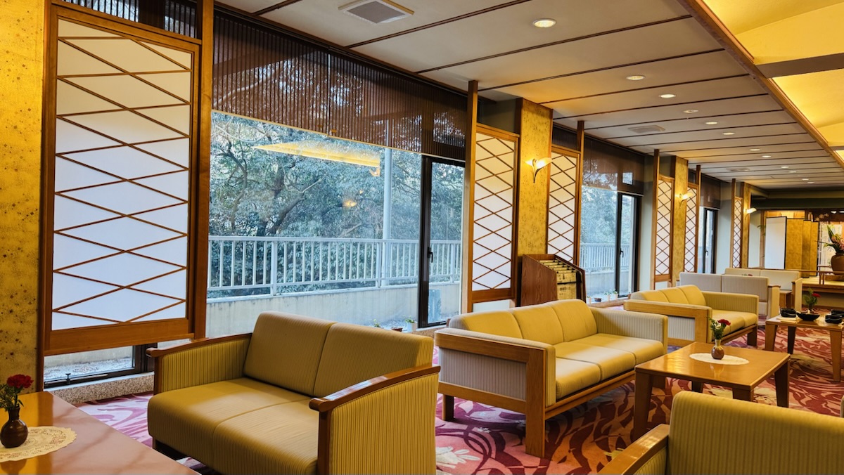 受付を済ませて部屋の準備が出来るまでロビーで休憩。