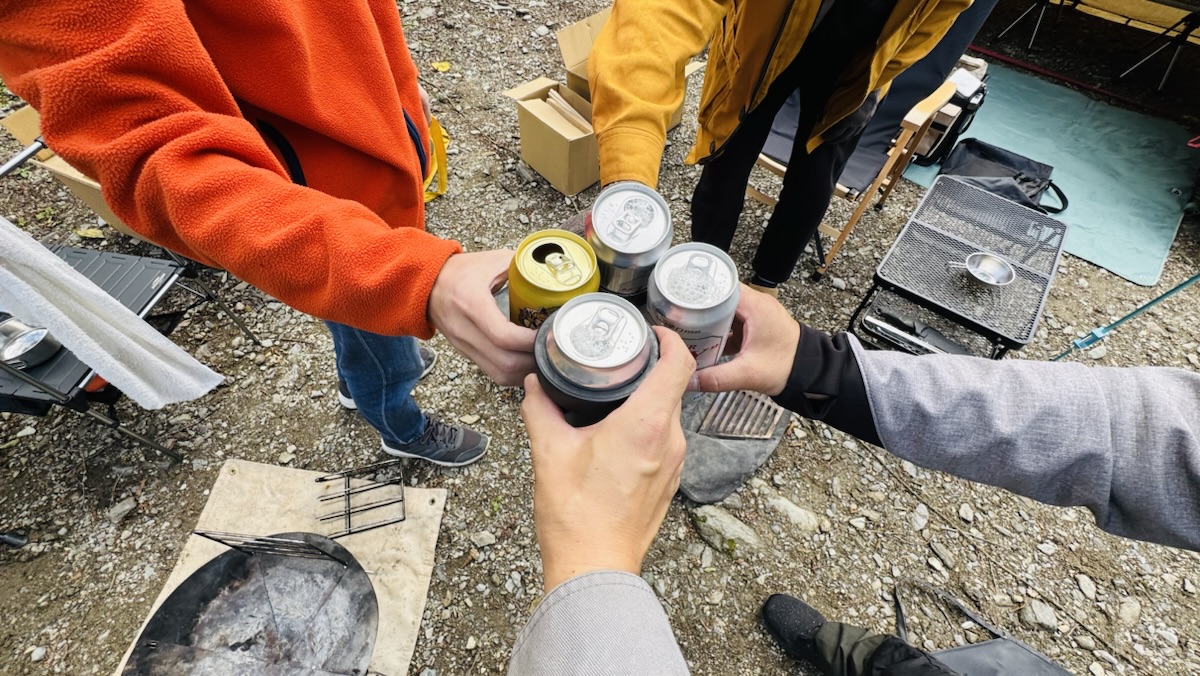 みんなで持ち寄った食材をシェアしながら飲んで食べての野営スタイルのキャンプです。