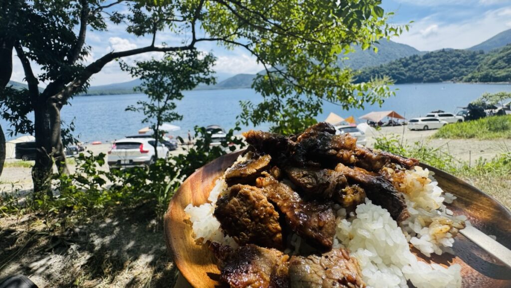 ご飯の上にステーキを🔛してもう最高すぎる昼食です!