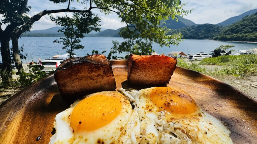 朝ごはん 旅行日記 X Facebook はてブ Pocket LINE コピー 2025.10.03 こんにちは!西浦です。 焚き火をしながら朝ごはんはホットサンド まぁ 美味しすぎますよね。 そして ブロックベーコンを焼いて ベーコンエッグです。 最高に贅沢な朝食です! うますんぎ! それではまた👋