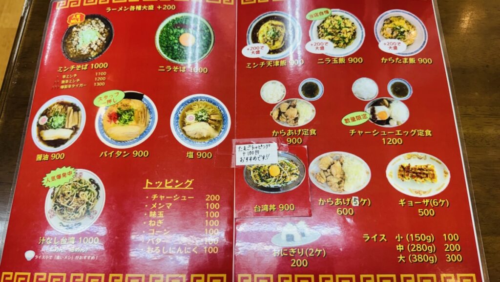 ちょっと光ってますがメニューです。